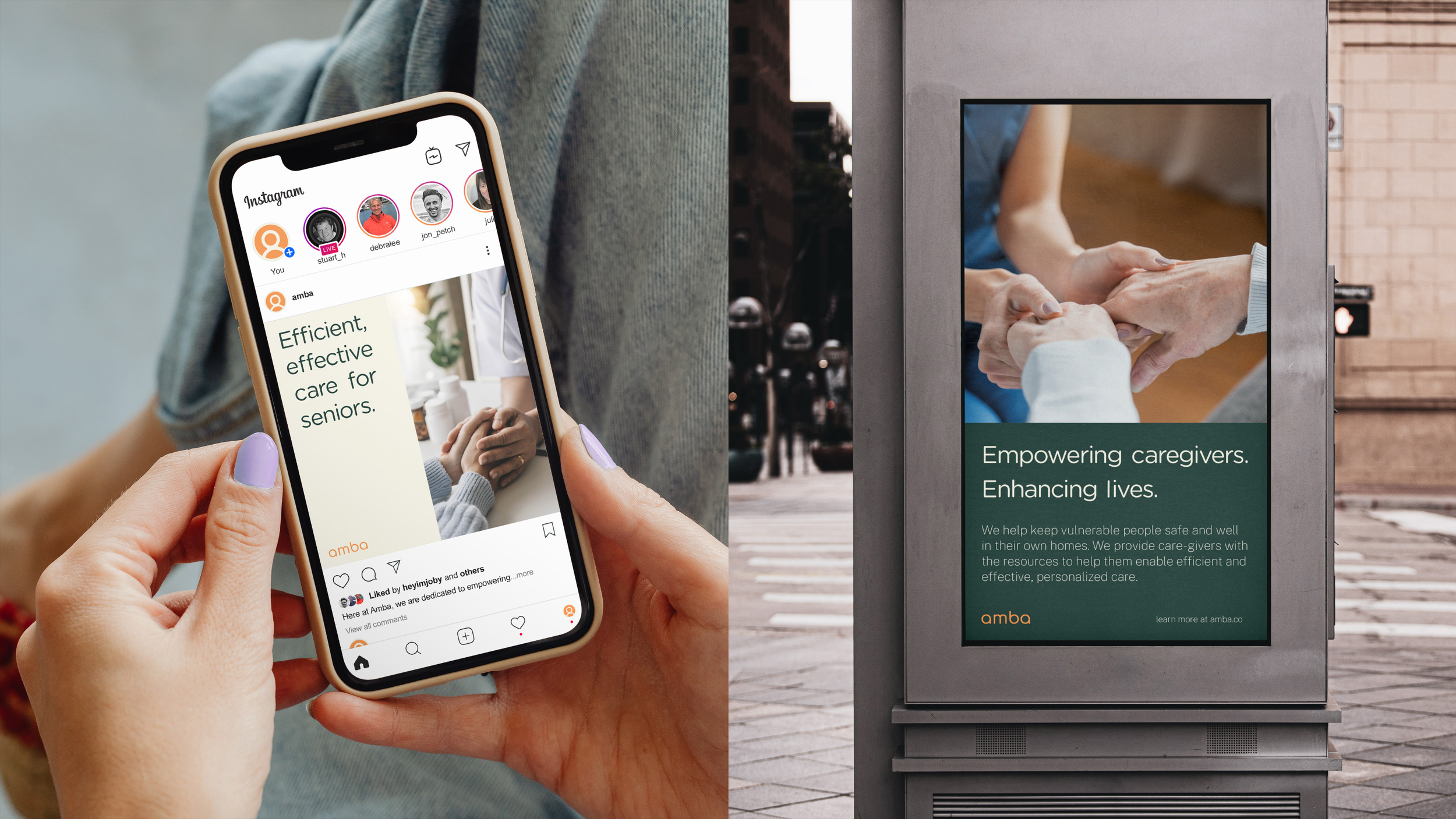 Amba now has a fully realised brand system, positioning it as a trusted leader in tech-driven senior care.